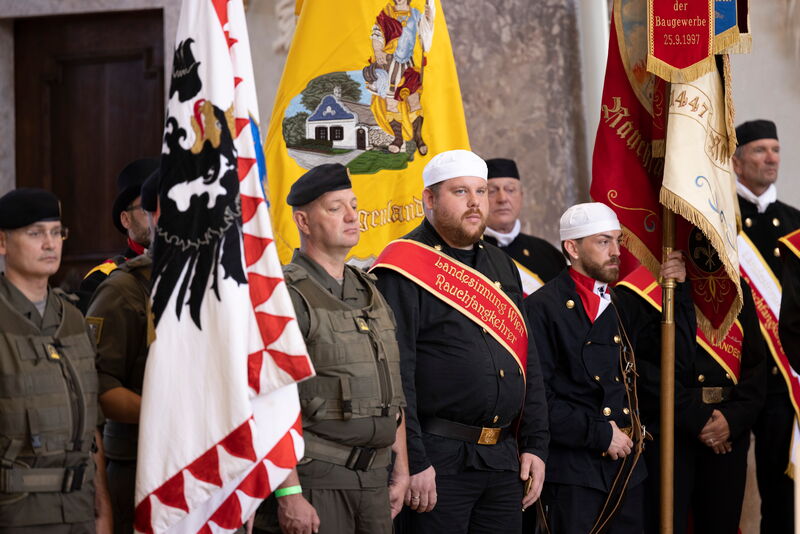 Als Fahnenpatinnen für die neue Fahne der niederösterreichischen Rauchfangkehrer agierten Verteidigungsministerin Klaudia Tanner, Spartenobfrau Renate Scheichelbauer-Schuster und die Präsidentin der Organisation „Hilfe im eigenen Land“, Sissy Pröll. „Die Sicherheitsfamilie ist heute hier versammelt – und die Rauchfangkehrer sind ein wichtiger Teil davon“, so Bundesministerin Tanner im Zuge des Festaktes. Spartenobfrau Scheichelbauer-Schuster sagte, es sei „eine große Ehre und Freude“, Fahnenpatin zu sein, Sissy Pröll hielt fest: „Peter Engelbrechtsmüller steht für Sicherheit und für soziale Kompetenz“.