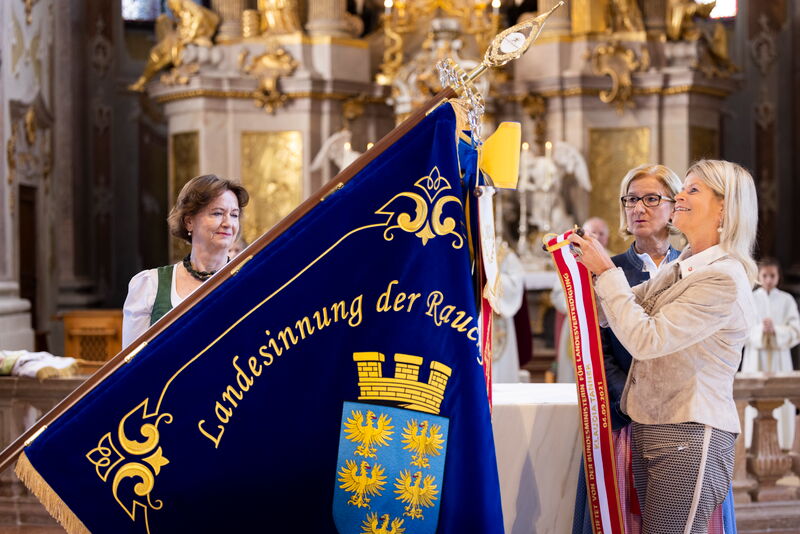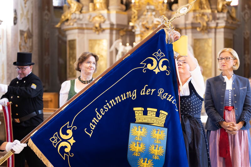 „Fahnenmutter“ Landeshauptfrau Johanna Mikl-Leitner übergab nach der Segnung die neue Fahne offiziell an die Rauchfangkehrer Niederösterreich und hob dabei die Bedeutung der Tradition hervor. Mikl-Leitner betonte darüber hinaus auch die große Verantwortung, die die Rauchfangkehrer für den Schutz und die Sicherheit der Bevölkerung haben. Beim scheidenden  Bundesinnungsmeister Peter Engelbrechtsmüller bedankte sie sich persönlich für seine unermüdliche Arbeit und seinen Einsatz für das Rauchfangkehrerhandwerk: „Peter ist einer, der nicht nur Tradition lebt, sondern gleichzeitig auch Innovator“.