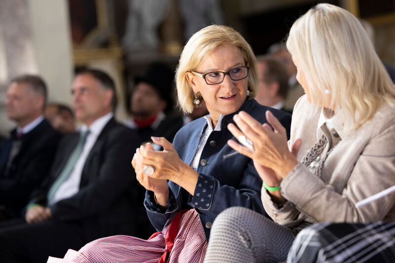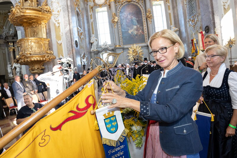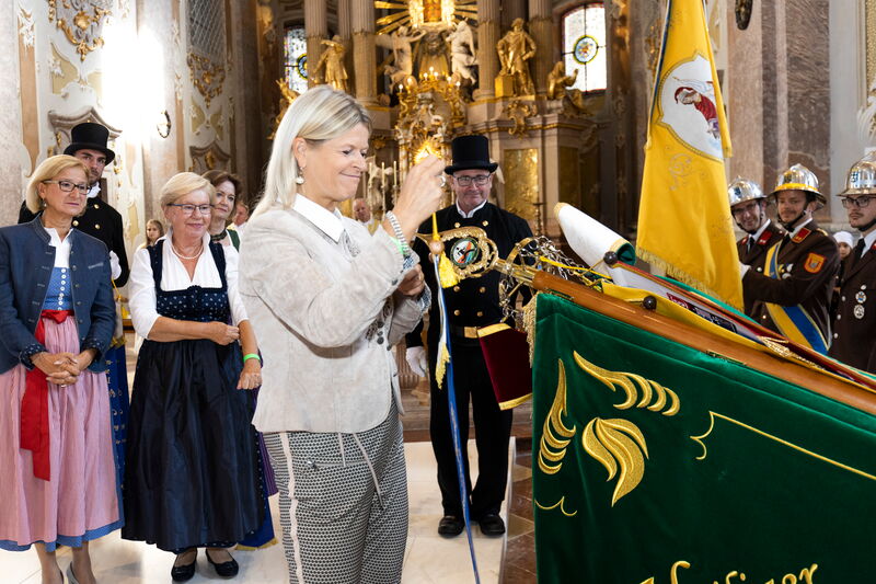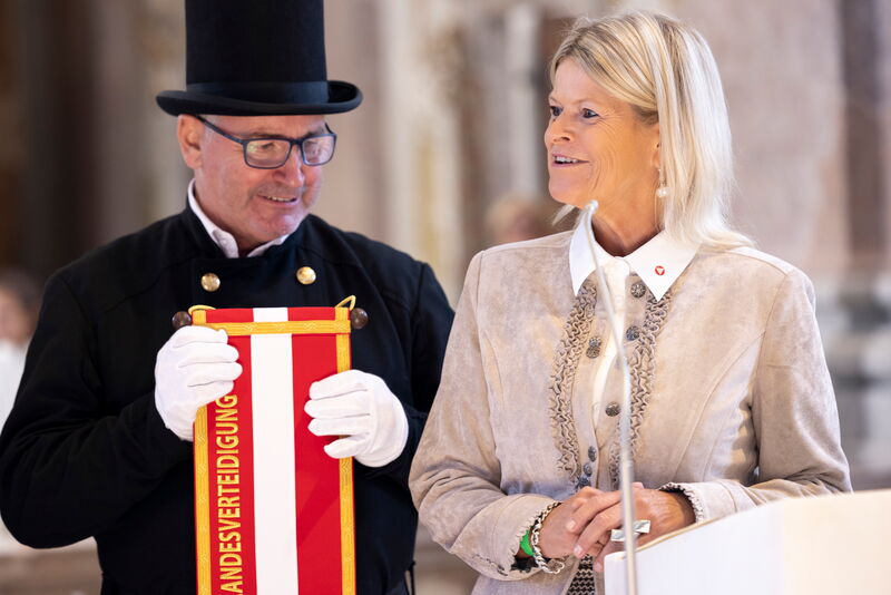 Als Fahnenpatinnen für die neue Fahne der niederösterreichischen Rauchfangkehrer agierten Verteidigungsministerin Klaudia Tanner, Spartenobfrau Renate Scheichelbauer-Schuster und die Präsidentin der Organisation „Hilfe im eigenen Land“, Sissy Pröll. „Die Sicherheitsfamilie ist heute hier versammelt – und die Rauchfangkehrer sind ein wichtiger Teil davon“, so Bundesministerin Tanner im Zuge des Festaktes. Spartenobfrau Scheichelbauer-Schuster sagte, es sei „eine große Ehre und Freude“, Fahnenpatin zu sein, Sissy Pröll hielt fest: „Peter Engelbrechtsmüller steht für Sicherheit und für soziale Kompetenz“.