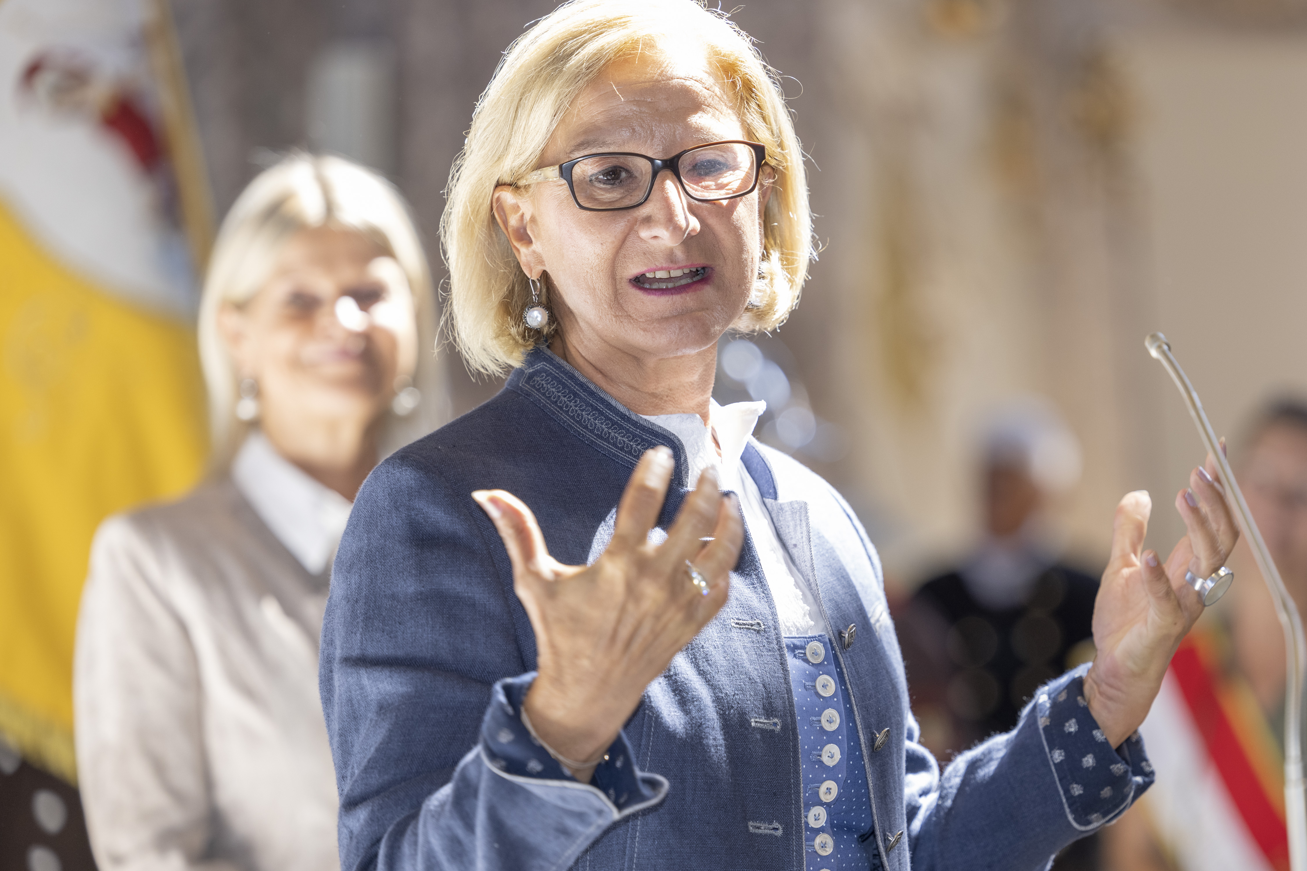 „Fahnenmutter“ Landeshauptfrau Johanna Mikl-Leitner übergab nach der Segnung die neue Fahne offiziell an die Rauchfangkehrer Niederösterreich und hob dabei die Bedeutung der Tradition hervor. Mikl-Leitner betonte darüber hinaus auch die große Verantwortung, die die Rauchfangkehrer für den Schutz und die Sicherheit der Bevölkerung haben. Beim scheidenden  Bundesinnungsmeister Peter Engelbrechtsmüller bedankte sie sich persönlich für seine unermüdliche Arbeit und seinen Einsatz für das Rauchfangkehrerhandwerk: „Peter ist einer, der nicht nur Tradition lebt, sondern gleichzeitig auch Innovator“.